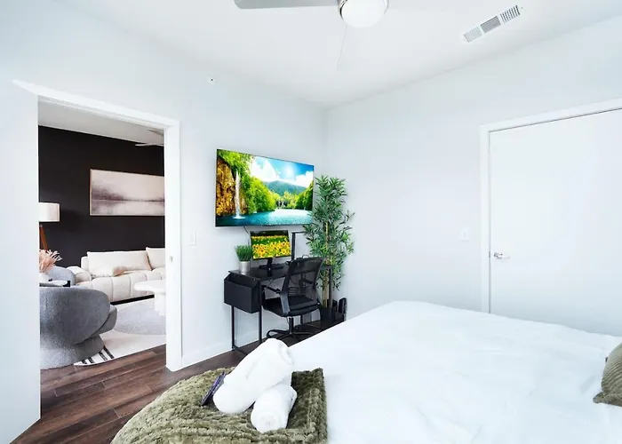 Each well-appointed unit at the Cozy 1Br-W Parking & Pool features thoughtful design and upscale furnishings, ensuring a restful retreat after a day of exploring. Guests can enjoy spacious layouts that come complete with a fully equipped kitchen, allowing for a taste of home during your stay. The soothing swimming pool offers a refreshing respite, inviting visitors to relax under the Texas sun.
